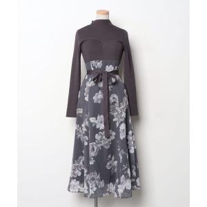 ワンピース 異素材チュールドッキングオフショルニットワンピース