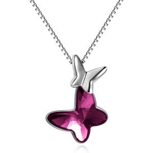 【並行輸入品】AOBOCO スターリングシルバー製 チェイシングバタフライペンダントネックレス オーストリア産クリスタル装飾 素晴らしい記念日 誕生日