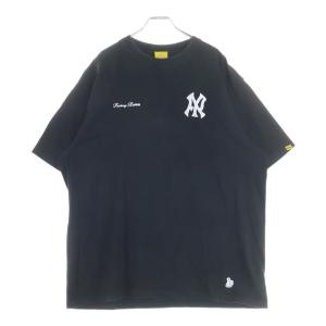 FR2 エフアールツー MLB NYロゴ刺繍 クルーネック半袖Tシャツ ブラック