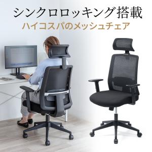 オフィスチェア メッシュ ハイバック シンクロ ロッキング デスクチェア パソコンチェア 椅子 おしゃれ アームレスト 可動 ヘッドレスト 150-SNCM58BK