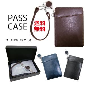 パスケース 定期券入れ 薄型カードケース PASMO ICカード 入館証入れ メンズ 巻き取りリール&ストラップ付き レザー調 箱入れ 無地