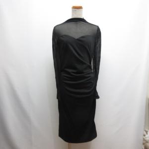 シーイン SHEIN シアー切替え 長袖 ワンピース ドレス S 黒 ブラック ストレッチ タイト レディース