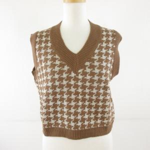シーイン SHEIN ニットベスト Vネック プルオーバー 茶 S *T571 レディース