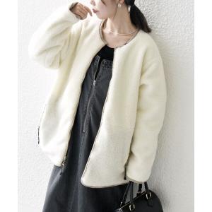 ノーカラーコート コート SHIPS Colors:ボンディング ノーカラー ジップ アウター レディース