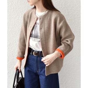 ジャケット ノーカラージャケット SHIPS any: バイカラー クルーネック カーディガン ジャケット レディース
