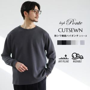 カットソー 3シーズン ハイポンチ 伸縮性 ストレッチ 長袖 クルーネック 抗ピリング 防シワ ウォッシャブル イージーケア