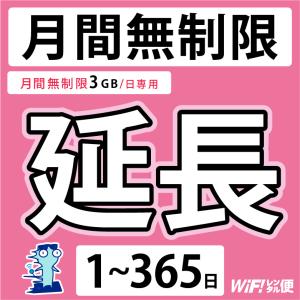 WiFiレンタル 延長注文 1日〜365日まで選べる【月間無制限(3GB/日)用 WiFiレンタルルーター】