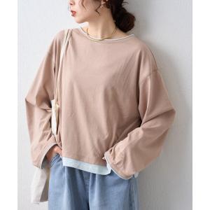 tシャツ 「接触冷感/一枚で決まる」フェイクレイヤードシアースラブ刺繍オーバーTee レディース