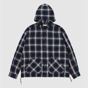 セダンオールパーパス Ombre Plaid Hooded Shirt #Black Plaid [SD26S-SH03] XL メンズ シャツ・ブラウス SEDAN ALL-PURPOSE