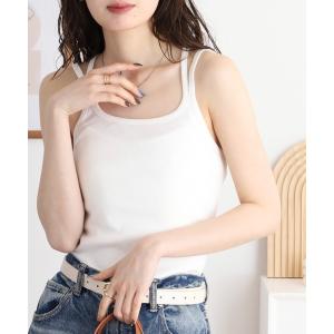 タンクトップ ノースリーブ atONE ボートネックワッフルタンクトップ レディース