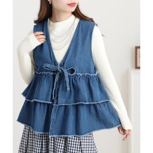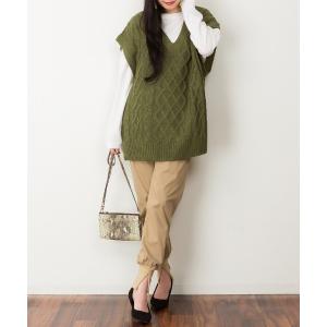 ベスト ジレ atONE ケーブル編みVネックベスト レディース