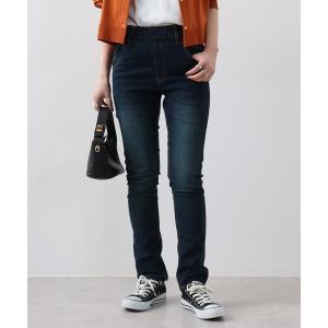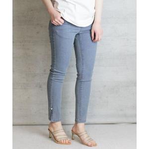ジーンズ デニム デニムパンツ atONE 裾パール付きウエストゴムデニムスリムパンツ レディース