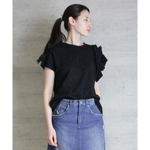 tシャツ atONE 片袖フリル デザインカットソー 半袖 レディース