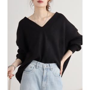 「atONE」 「LARU」Vネックニット M-L ブラック レディース