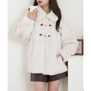 コート アウター ラビット風 エコファー ビット付き ミドル丈 コート ファイクファー アウター レディース