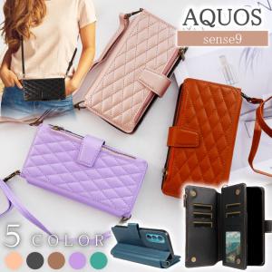 AQUOS sense9 ケース 手帳型 レザーキルティング スマホショルダー カード収納 TPU PU耐衝撃 アクオス センス9ケース