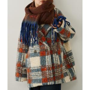 コート チェスターコート Bigチェックダブルミドルコート レディース