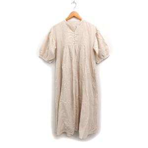 セシール cecile コットン ワンピース ロング丈 半袖 ゆったり 無地 L ベージュ /FT28 レディース
