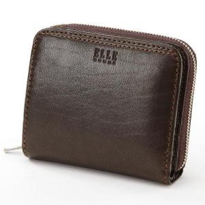 ELLE HOME(エルオム) ラウンドファスナー二つ折り財布 ブラウン