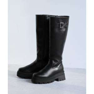 ブーツ スクエアトゥストレッチロングブーツ レディース