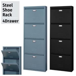 ロッカーデザイン シューズラック 4段 幅50cm 靴箱 スリム 省スペース 薄型 ロッカー スチール インダストリアル 下駄箱 SOHO オフィス お洒落 おしゃれ