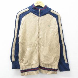 S/古着 ラコステ LACOSTE 長袖 フルジップ ニット カーディガン メンズ 80年代 80s ワンポイントロゴ フランス製 紺他 spe 26mar11