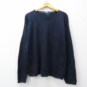 L/古着 ラルフローレン 長袖 ブランド セーター メンズ 90年代 90s 無地 リネン クルーネック 紺 spe 26mar11