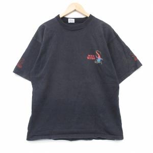 XL/古着 半袖 ビンテージ Tシャツ メンズ 90年代 90s トカゲ コットン クルーネック USA製 黒 spe 26mar11