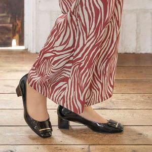【steady4月号掲載】【レイン対応】バックルモチーフスクエアトゥパンプス
