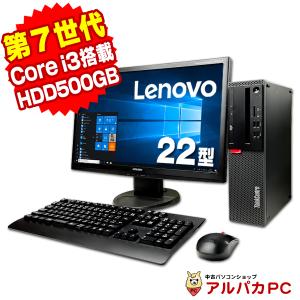 22型ワイド液晶セット 第7世代 Core i3 7100 Lenovo ThinkCentre M710s Small デスクトップ メモリ4GB 500GB DVDマルチ Windows10 Pro 64bit WPS Office付 中古
