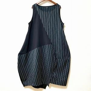 #snc メフウ m-mefu センソユニコ senso-unico ワンピース 40 黒 濃紺 ノースリーブ ストライプ 変形 異素材 レディース [893658]