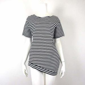 未使用品 センソユニコ Senso unico チュニック カットソー 半袖 アシンメトリー ランヘム L 40 黒 ブラック 白 ホワイト 美品