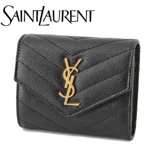 サンローラン SAINT LAURENT 三つ折り財布 モノグラム マルチフォールドウォレット 692061 BOW01 1000 ブラック YSL ミニ財布 コンパクト財布 カサンドラ