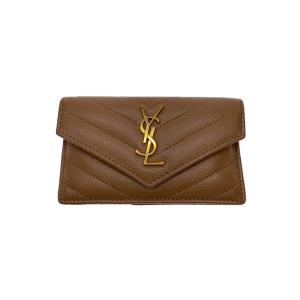 SAINT LAURENT◆状態考慮/Vステッチ/YSLロゴ/フラグメントケース/コインケース/レザー/キャメル/GUE612808