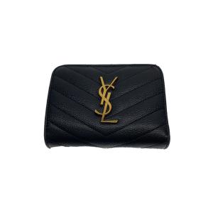 YVES SAINT LAURENT◆YSLロゴ/2つ折り財布/レザー/BLK/レディース