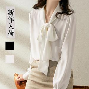 ボウタイブラウス ブラウス シャツ リボン 長袖 バルーンスリーブ 無地 オフィスカジュアル きれいめ 通勤 おしゃれ 上品 韓国 秋 春