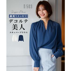 トップス ブラウス スキッパーブラウス 立体襟 タック 体型カバー 上品 きれいめ シンプル 無地 お洒落