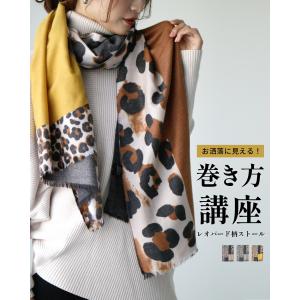 ストール 配色 レオパード ヒョウ柄色 大判ストール マフラー ショール 柄モノ 大きめ きれいめ カジュアル モカ グレー