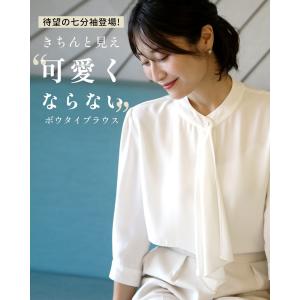 ブラウス ボウタイ 七分袖 ボウタイブラウス トップス S M L オフィス セレモニー フォーマル スタンドカラー ホワイト
