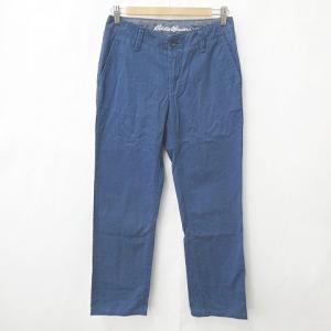 未使用品 エディーバウアー EDDIE BAUER アウトドアウエア パンツ ストレート ロング ウォッシュ加工 綿 青 ブルー P2 レディース