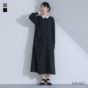 「送料無料」 ワンピース レディース 春 秋 冬 長袖 異素材 切替え ギャザー バイカラー ニット 「メール便不可」「30」
