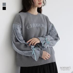 スウェット トップス レディース トレーナー 長袖 レース生地 刺繍 ロゴ 配色 ステッチ 伸縮性 「メール便不可」「30」