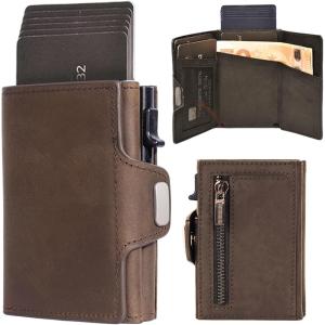 スマートウォレット ミニ財布 三つ折り財布 本革 カードケース スライド式 コンパクト 薄型 キャッシュレス(コーヒーブラウン)