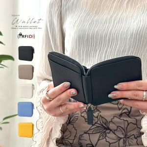 財布 レディース 本革 ミニ財布 二つ折り財布 薄い ラウンドファスナー コンパクト スキミング防止 シンプル