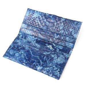 長財布 マチなし 小銭入れなし 薄型 / 本革 パイソン革 ダイヤモンドパイソン 群雲藍染