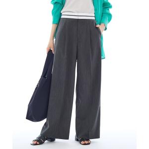 パンツ 「ウール調素材」ベルトデザインワイドパンツ レディース