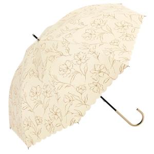 ビコーズ PUラインフラワー アイボリー 白色 ホワイト系 花柄 傘 レディース 長傘 雨傘 日傘 UVカット 遮光 晴雨兼用 大きい 丈夫 手開きタイプ