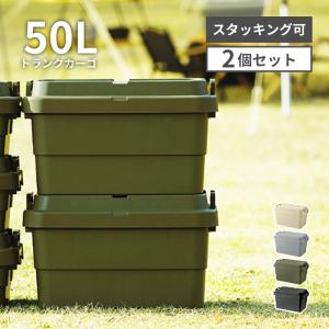 コンテナボックス 2個セット 収納 キャンプ スタッキング トランクカーゴ 50l 座れる グリーン 収納ボックス 蓋付き おしゃれ 机 防災 プラスチック コンパクト
