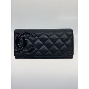 CHANEL◆長サイフ_カンボンライン_カーフスキン_ココマーク_BLK/牛革/BLK/レディース