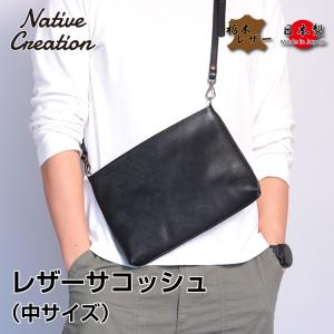【栃木レザー】レザーサコッシュ 中サイズ ショルダーバッグ メンズ レディース 日本製 本革 軽量 斜め掛け 鞄 ソフトレザー 柔らかい ギフト プレゼント GIFT